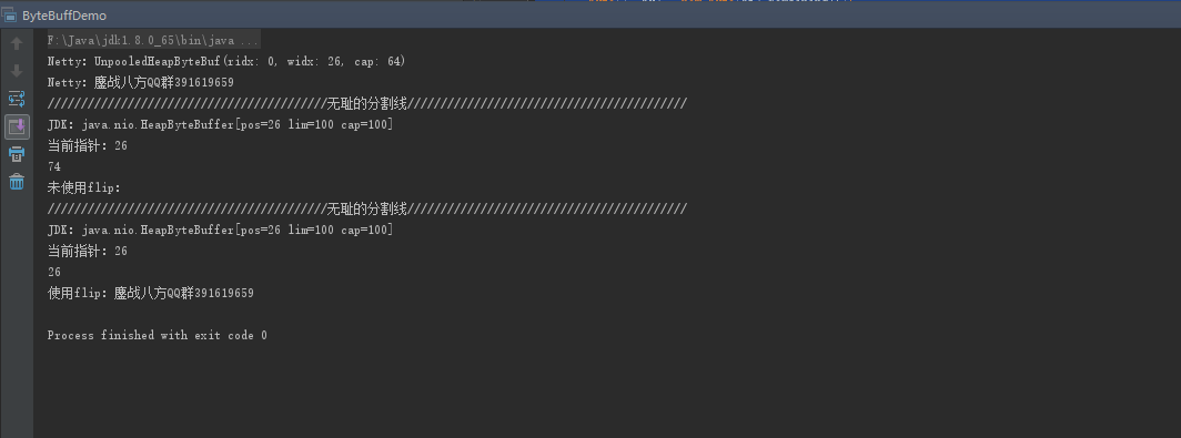 buf.writeBytes("鏖战八方QQ群391619659".getBytes());//扩容算法稍后讲解